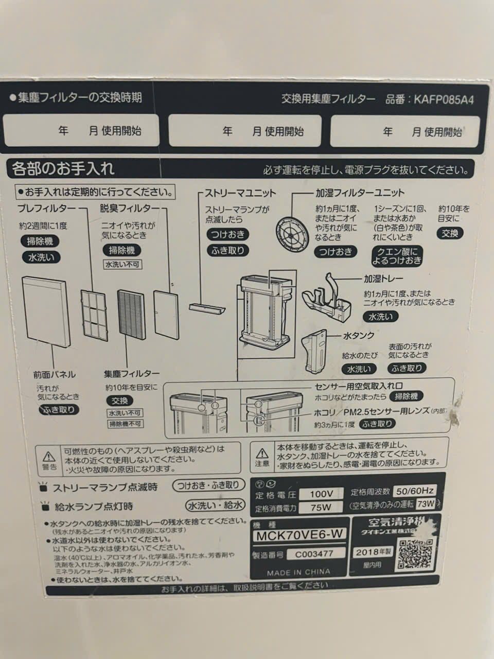 Máy Lọc Không Khí Đaikin Hộp VIP MCK70VE6 yahoo japan cs 75W