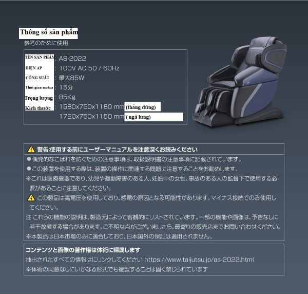 ( New) Taijutsu AS 2022 ghế massage made in Japan